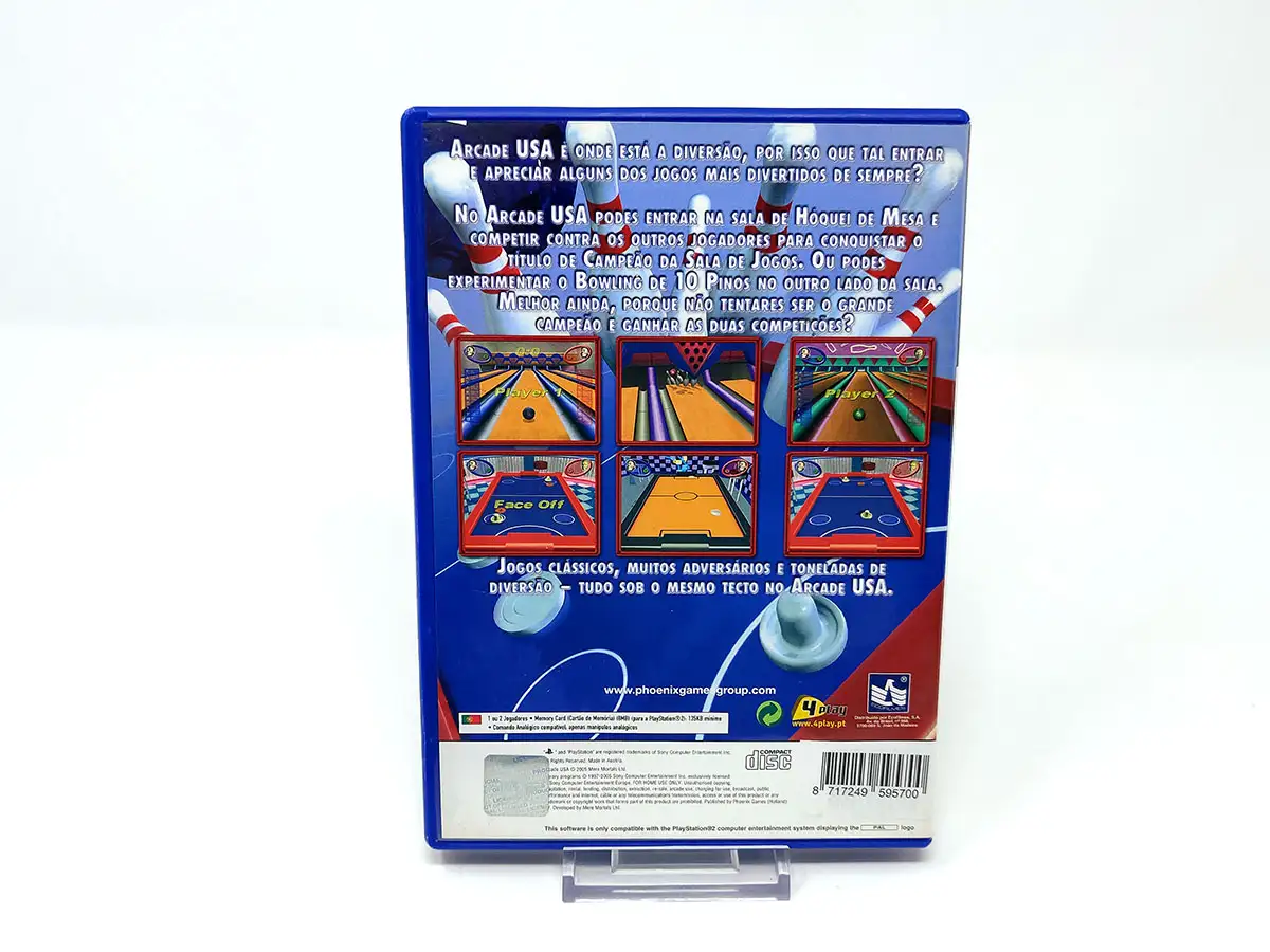 Arcade USA es un juego deportivo sencillo que presenta hockey de aire y bolos de 10 pines. Ambos juegos tienen soporte multijugador para 2 jugadores.