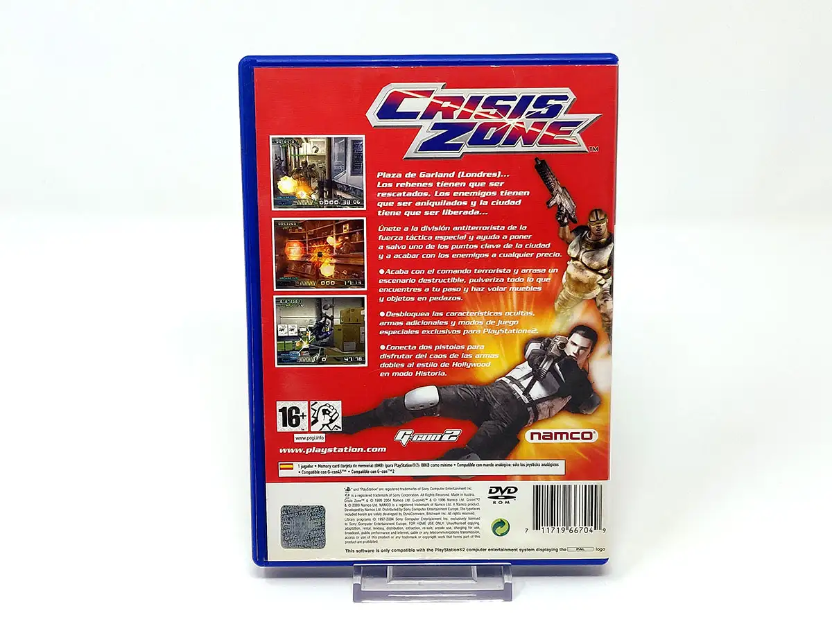 Crisis Zone para PlayStation 2 es un puerto del juego de arcade del mismo nombre, y es un derivado de la serie Time Crisis. En el juego eres parte de un grupo antiterrorista de élite llamado Fuerza Táctica Especial y eres enviado a luchar contra un grupo terrorista llamado U.R.D.A. El grupo terrorista se ha apoderado de un centro de oficinas y quiere destruir el reactor nuclear enterrado en las profundidades del complejo. De ti depende detenerlos.