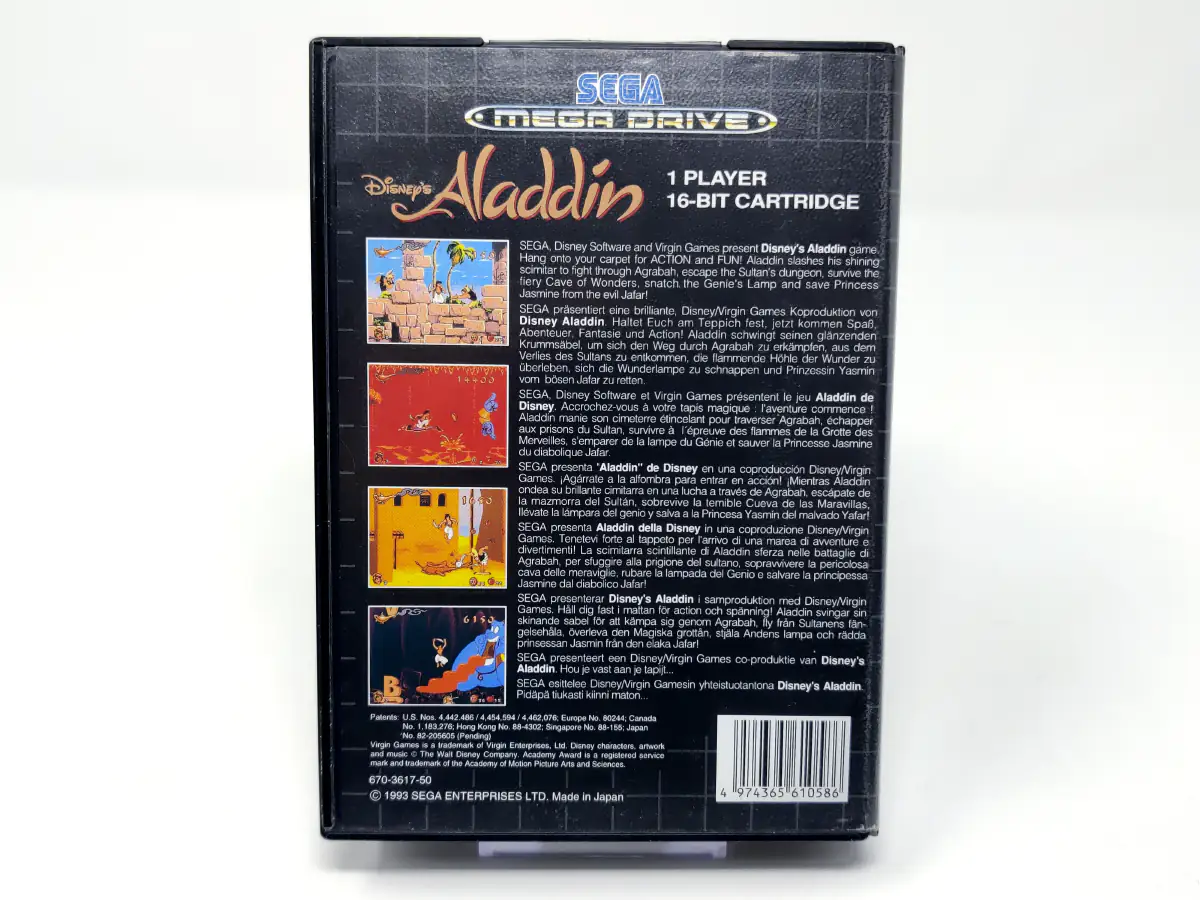 Aladdin de Disney es un juego de plataformas de desplazamiento lateral en el que el jugador controla a Aladdin en todos los escenarios y una historia basada en la película homónima.