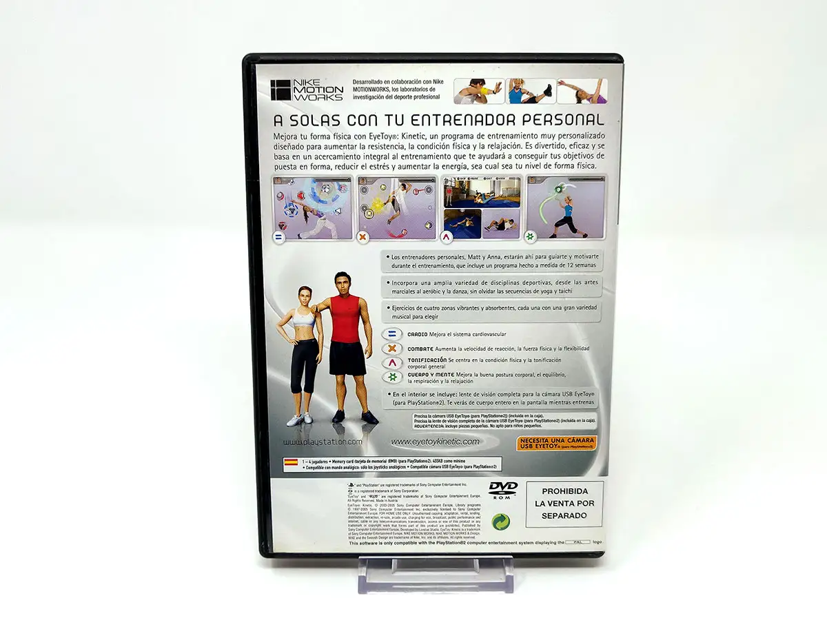 EyeToy: Kinetic es un juego interactivo de entrenamiento físico que utiliza EyeToy de PS2 para permitir al jugador realizar más de 20 ejercicios que cubren cuatro zonas de fitness: combate, cardio, tonificación y mente y cuerpo. Desarrollado con Nike Motionworks, el trasfondo del juego incluye aeróbicos, artes marciales y danza.