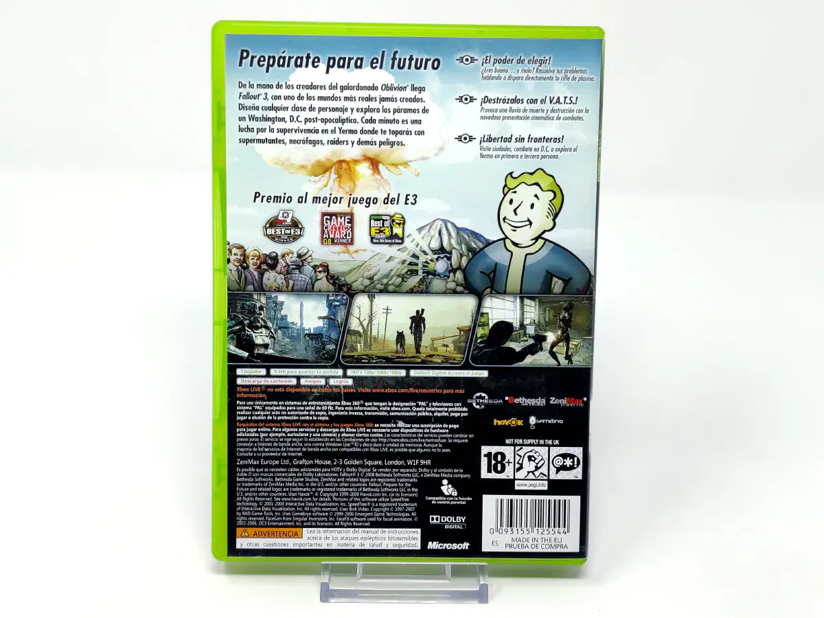 Fallout 3 es un juego de rol de acción legendario, que continúa la franquicia Fallout. Los jugadores se sumergen en los eventos que tuvieron lugar 36 años después del final de Fallout 2. El juego está ambientado en el mundo abierto post-apocalíptico conocido como "Capital Wasteland". Según la historia, en el año 2277, todo el mundo familiar se encuentra devastado. El cataclismo es consecuencia de la guerra nuclear de 2077 entre Estados Unidos y China. Las únicas personas que quedan en la Tierra son los afortunados que lograron mantenerse con vida en la superficie y los que lograron llegar a los almacenes proporcionados por Vaul-Tech (como el personaje principal). Al principio, el protagonista se despierta dentro del Refugio 101. Su único objetivo es encontrar a su padre, que abandonó el almacén hace algún tiempo. En su camino, se pondrá en contacto con otros supervivientes (tanto de pandillas como de solteros) y explorará zonas enteras en restauración de Washington D.C., el norte de Virginia y Maryland. El juego ofrece innumerables oportunidades de progreso, por lo que el juego está sobrecargado con varias funciones que incluyen tipos de personalización, numerosas conversaciones con NPC, misiones secundarias... todo lo que un jugador promedio enfrentará.