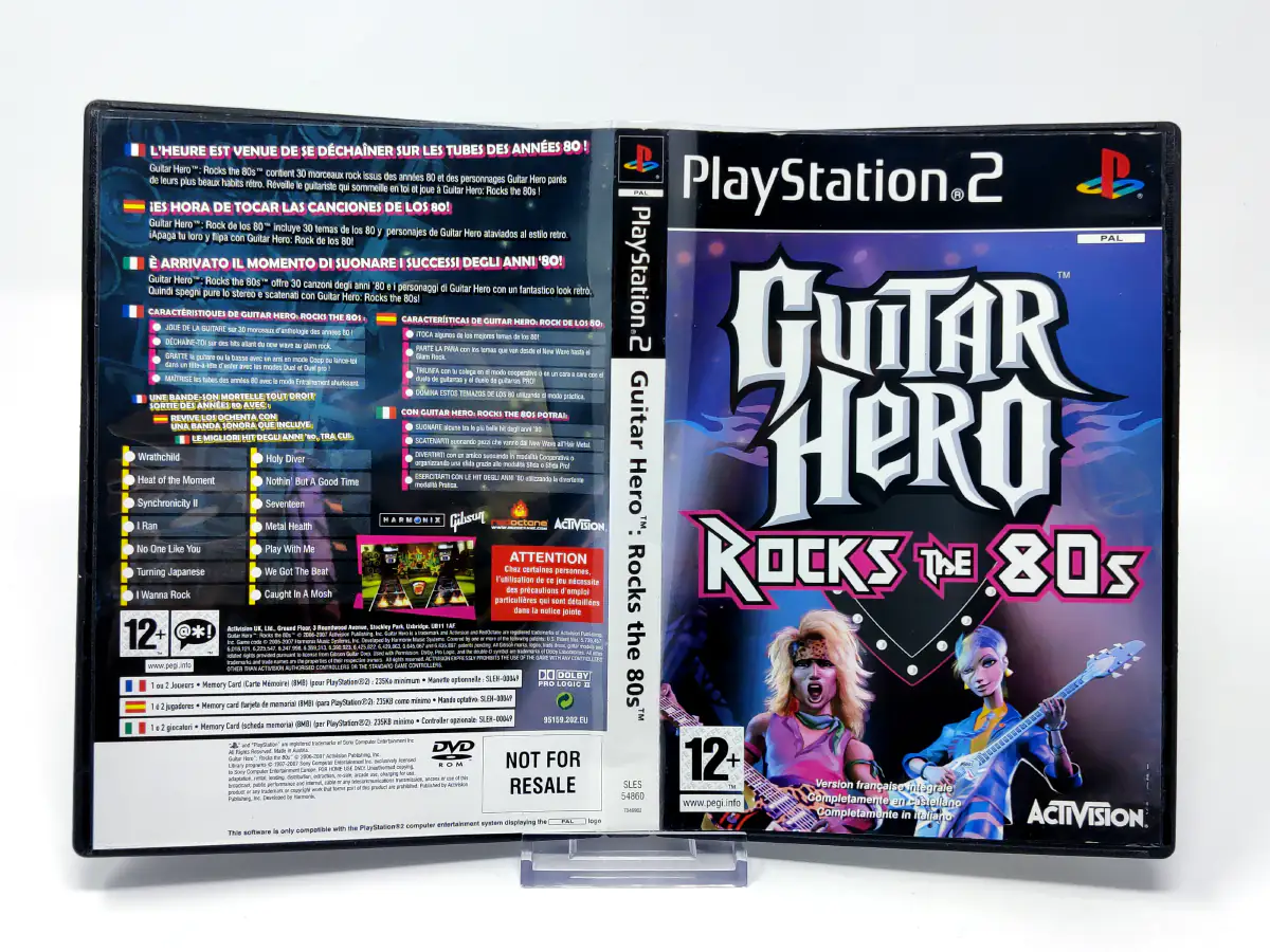 Los fanáticos pueden volver a sacar sus controladores de guitarra SG con forma de Gibson y disfrutar de sus pistas de rock favoritas. Guitar Hero: Rocks the 80s, exclusivo de PS2, presenta lugares de rock retro y personajes hipster, guitarras desbloqueables, modos de juego intensos y, lo más importante, 30 increíbles canciones nuevas para experimentar la máxima fantasía de estrella de rock. La lista de temas que derriten los dedos incluye: I Wanna Rock (de Twisted Sister), I Ran (de Flock of Seagulls), Round and Round (de Ratt), I Want Candy (de Bow Wow Wow), Metal Health (de Quiet Riot) Holy Diver (de Ronnie James Dio) y Heat Of The Moment (de Asia).