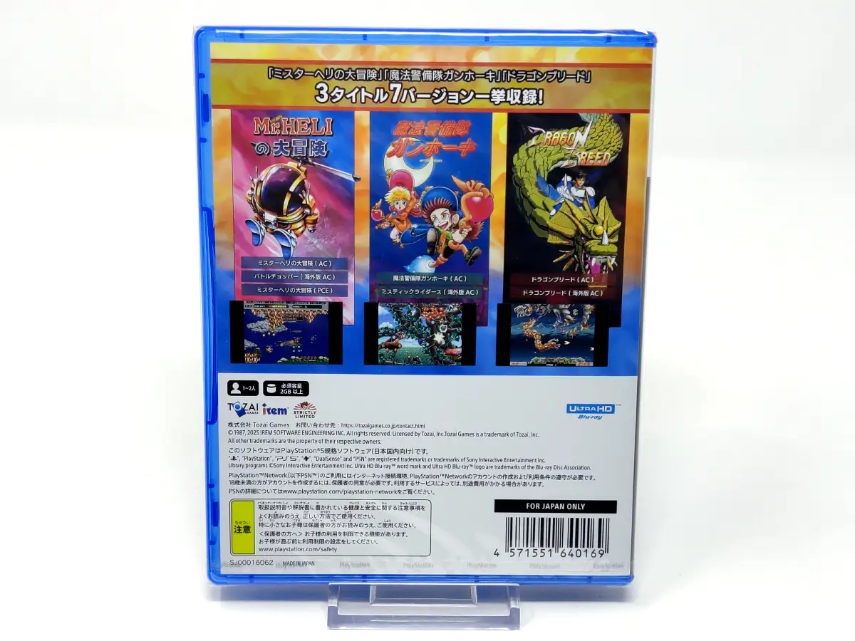 ININ regresa con el Volumen 3 de la IREM Collection, trayendo un trío de increíbles shoot ’em ups. Esta vez, ¡prepárate para magia, máquinas y caos! Mr. Heli (Battle Chopper) Conoce a Mr. Heli, un peculiar helicóptero con patas y muchísima potencia de fuego. Debutó en los arcades japoneses en 1987. Este shooter multidireccional del tipo “cute ’em up” te lleva por niveles ingeniosos llenos de mapas tipo rompecabezas, caminos ocultos y jefes gigantescos. Extrae cristales, gana dinero y mejora tu arsenal para mantener las aspas girando sin parar. Mystic Riders La magia se mezcla con el caos en Mystic Riders, un shooter de fantasía de 1992 donde montas una escoba mágica y enfrentas tortugas celestiales gigantes, demonios de fuego y otras criaturas míticas. Usa tu escoba como un búmeran para bloquear proyectiles, esquiva peligros y recorre mundos vibrantes. ¡No vayas solo! Une fuerzas con un amigo en el modo cooperativo local como Mark, el mago, o Zeal, la bruja, en un viaje encantado a través de la historia arcade. Dragon Breed Por último: de escobas a dragones. Dragon Breed, la joya arcade de 1989, te sumerge en una pesadilla biomecánica. Lucha a lomos del poderoso dragón Bahamoot, que puede protegerte del daño y arrasar con todo a su paso. Imagina un cruce entre R-Type- y una fantasía apocalíptica... ¡con alas! Características: - Tres shoot ’em ups horizontales de fantasía y ciencia ficción de IREM. - Versiones incluidas: - Mr. Heli/Battle Chopper: Arcade (inglés/japonés), PC Engine (japonés) - Mystic Riders: Arcade (inglés/japonés) - Dragon Breed: Arcade (japonés) - Mejoras opcionales para el mando, como asignación de disparo rápido y esquemas de control personalizables. - Guardado/carga rápida y función de rebobinado integrada para una experiencia fluida. - Filtros de pantalla para revivir la estética clásica de los arcades. - Clasificaciones globales para presumir tus puntuaciones más altas. - Cooperativo local para 2 jugadores en Mystic Riders, para una acción mágica en pareja. - Enemigos extraños, jefes enormes y una jugabilidad legendaria. ¡Disfruta de la magia, las máquinas y el caos del esplendor arcade de IREM — todo en una sola colección explosiva!