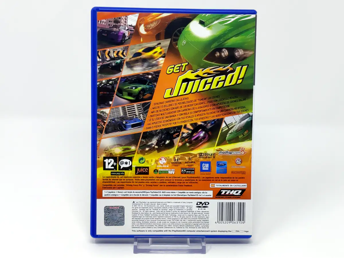 Juiced es un juego de carreras, ambientado en la ficticia Angel City, que adopta el estilo de vida y la cultura de las carreras callejeras y el tuning, similar a Need for Speed Underground., con elegantes autos totalmente personalizables, carreras rápidas, ganando respeto y apostando. El modo arcade ofrece carreras rápidas y en el modo personalizado puedes configurar eventos con autos y pistas desbloqueados. Hay 52 vehículos de fabricantes conocidos para adquirir, y el juego cuenta con un total de 7,5 billones de posibilidades de personalización de automóviles. Para que todos los autos, pistas y piezas estén disponibles, debes progresar en el modo carrera, donde construyes autos y participas en carreras para ganar dinero y respeto. Además de las tradicionales carreras de circuito y de punto a punto, también existen carreras de resistencia (sprints) y concursos de maniobras difíciles que requieren técnicas avanzadas de conducción.