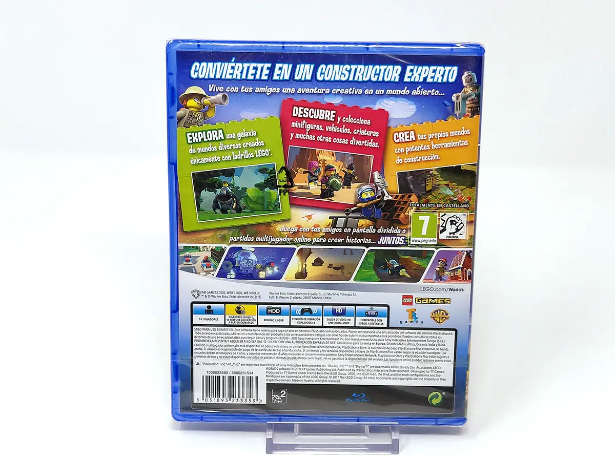 EXPLORAD. DESCUBRID. CREAD. JUNTOS. LEGO® Worlds es un universo abierto de mundos generados por procedimientos y fabricados con ladrillos de LEGO, que puedes manipular y generar libre y dinámicamente con maquetas de LEGO. Crea todo lo que puedas imaginar de ladrillo en ladrillo, o usa herramientas de escenario a gran escala para crear enormes cordilleras y poblar tu mundo de islas tropicales. Coloca estructuras prefabricadas para construir y personalizar cualquier mundo a tu antojo. Explora utilizando helicópteros, dragones, motos o incluso gorilas y desbloquea tesoros que mejorarán tu experiencia de juego. Observa cómo cobran vida tus creaciones a través de personajes y criaturas que interactuarán contigo y los demás de formas inesperadas. ¡En LEGO Worlds, todo es posible!