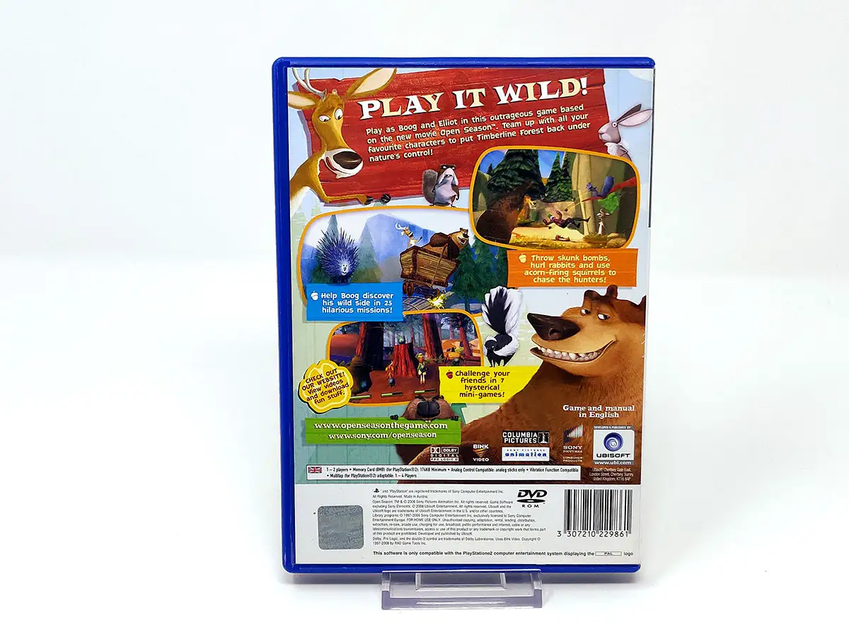 En el videojuego Open Season, el jugador asume el papel de Boog, un oso domesticado que intenta regresar a la civilización después de ser liberado en un bosque cercano debido a un desafortunado incidente, y Elliot, un ciervo loco de un solo cuerno que desea ser el compañero de Boog.