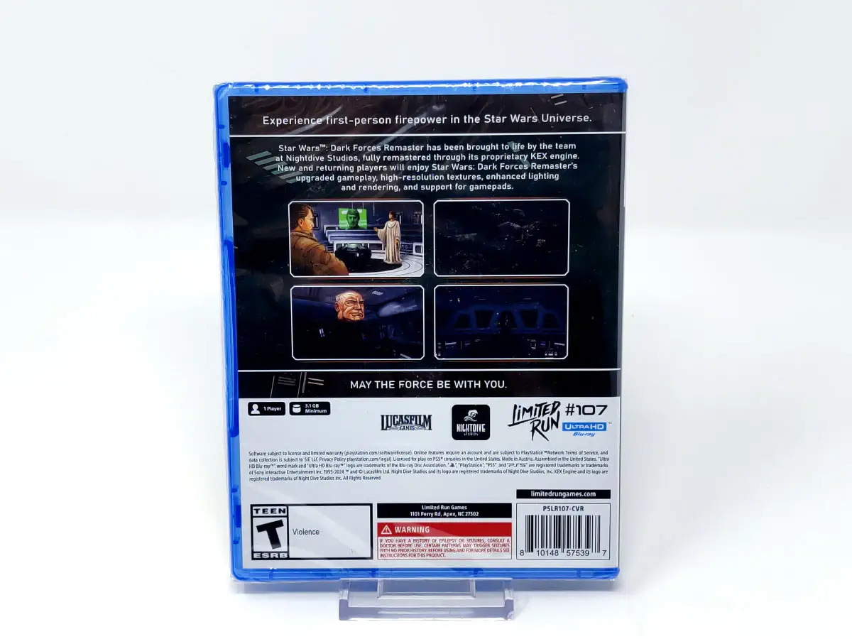 Star Wars™: Dark Forces Remaster con esta versión completamente remasterizada con KEX, su motor gráfico propietario. Tanto los amantes de este clásico como los nuevos jugadores disfrutarán de Star Wars: Dark Forces Remaster gracias a su experiencia de juego mejorada, texturas en alta resolución, iluminación y renderizado mejorados, y compatibilidad con mandos modernos.