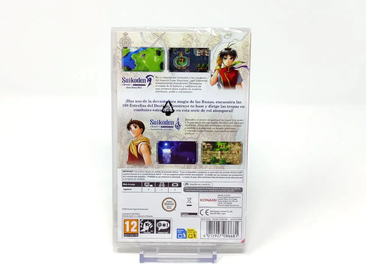 AKA: Suikoden I & II HD Remaster: Gate Rune and Dunan Unification Wars | SKU Externa: HAC-A7A5A-ESP | EAN: 4012927086681