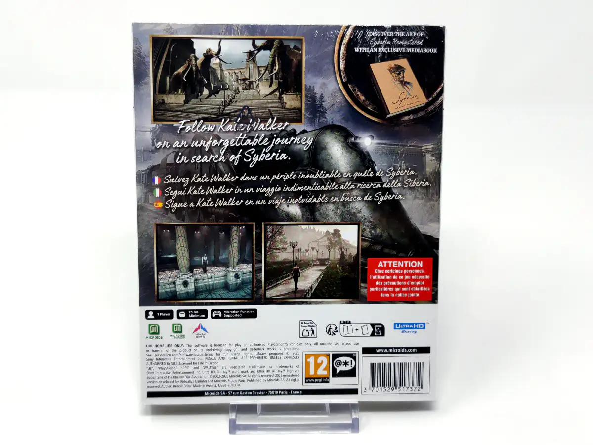 Un viaje inesperado, emocionante y profundamente emotivo que desafiará todo lo que creía saber. Lanzada por primera vez en 2002, Syberia se convirtió en una referencia en el género de aventuras, elogiada por su atmósfera única, su escritura aguda y la riqueza de la visión artística de Benoît Sokal. Esta remasterización es una nueva oportunidad para (re)descubrir la obra maestra, siguiendo los pasos de otros títulos de Benoît Sokal como “Syberia: The World Before” y el recién lanzado “Amerzone: The Explorer’s Legacy”.