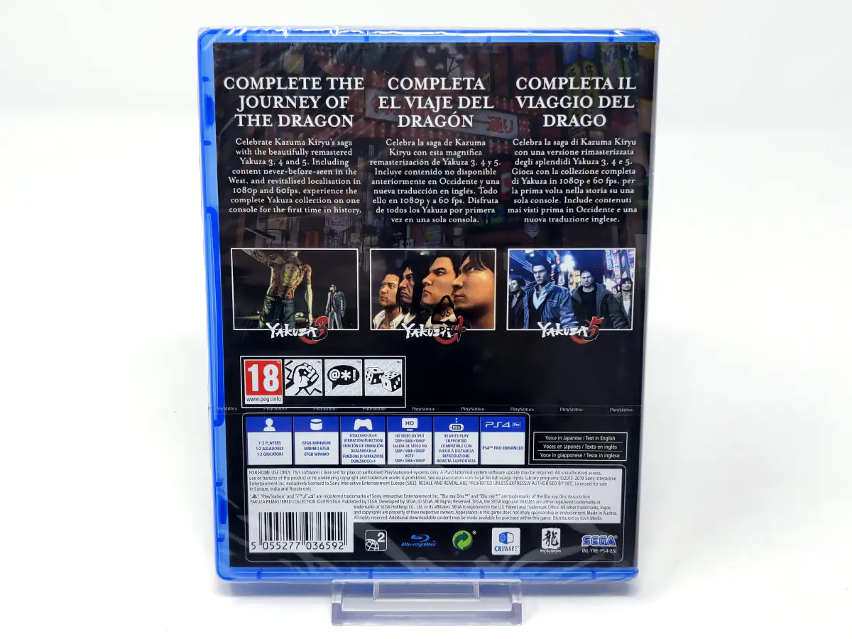 Celebra la saga de Kazuma Kiryu con Yakuza 3, 4 y 5 bellamente remasterizados. Con contenido restaurado y localización actualizada en 1080p y 60 fps, experimenta la colección completa de Yakuza en una consola por primera vez en la historia.
